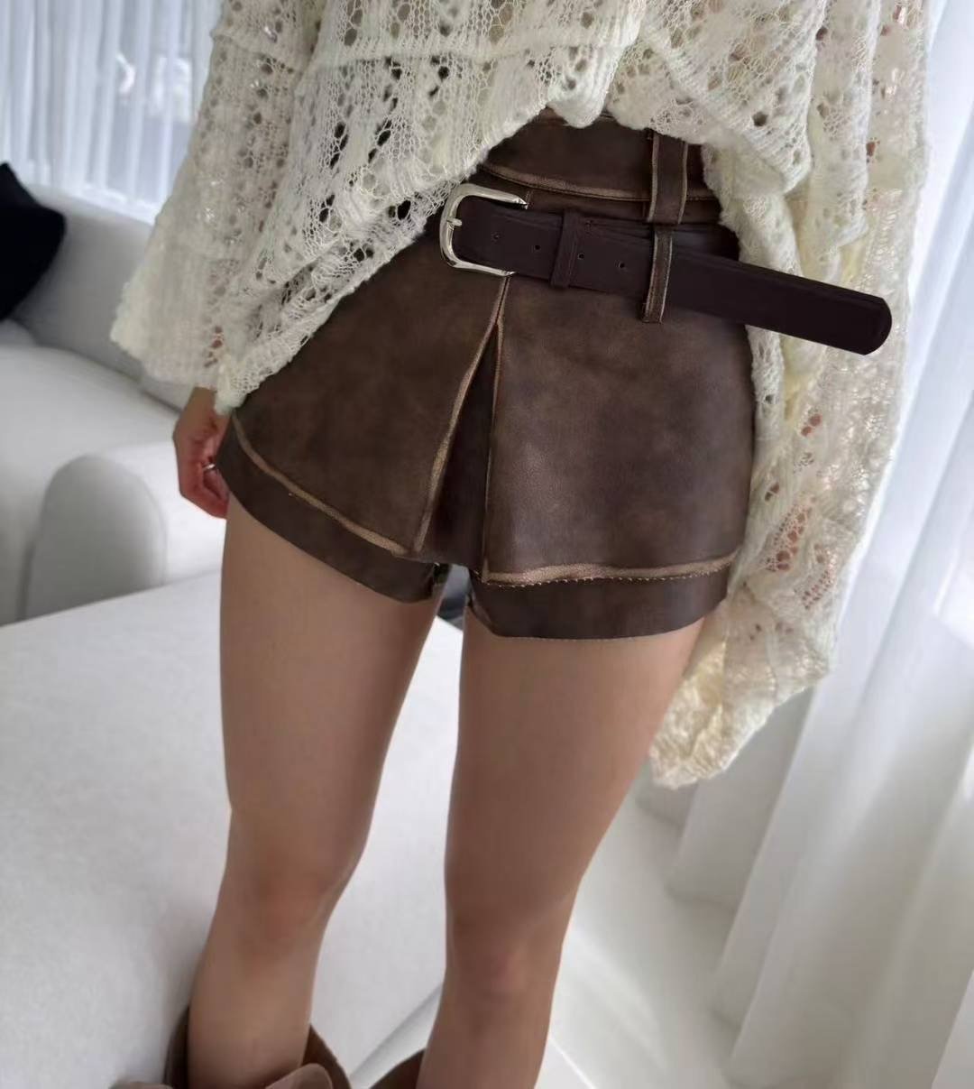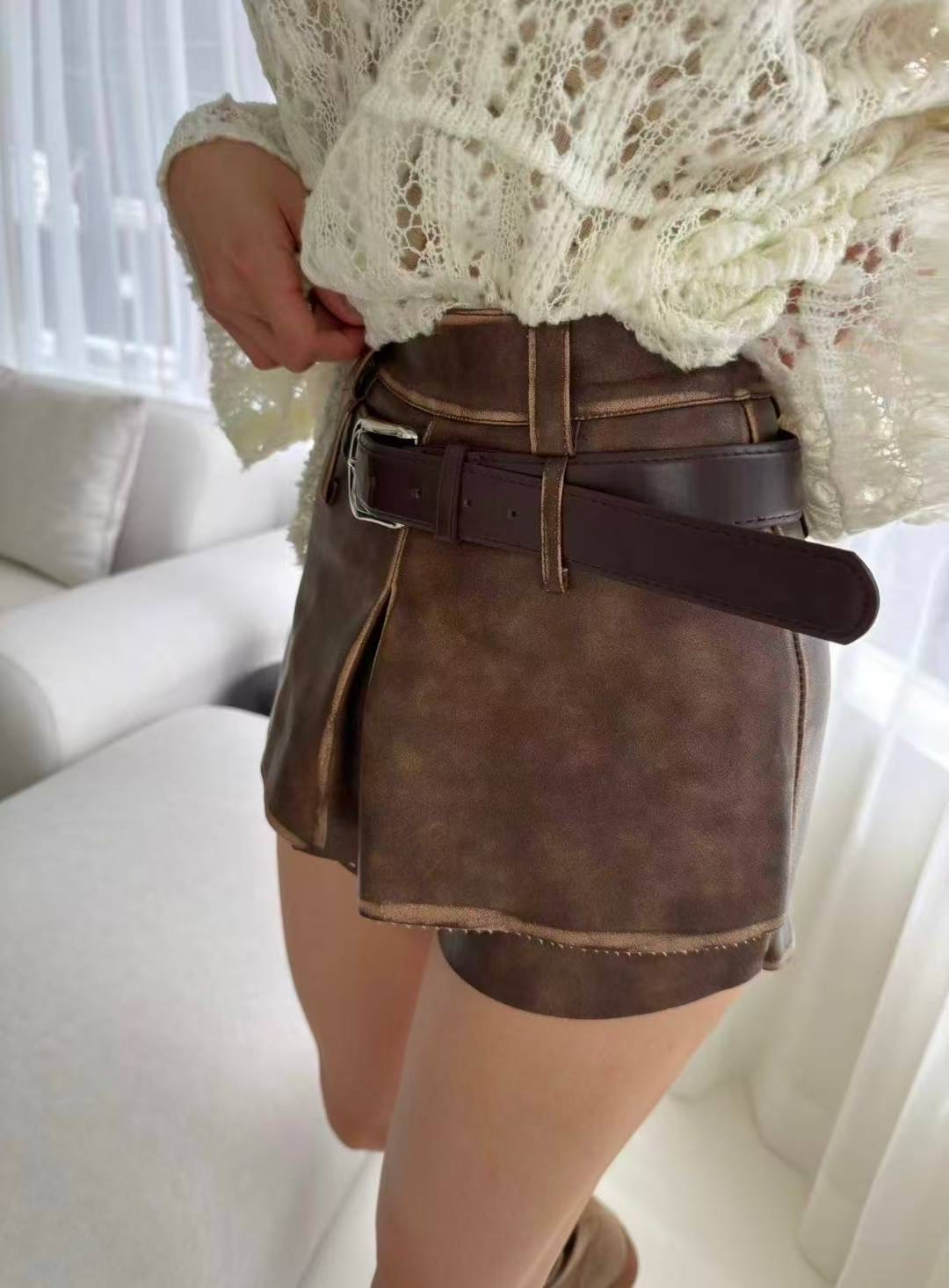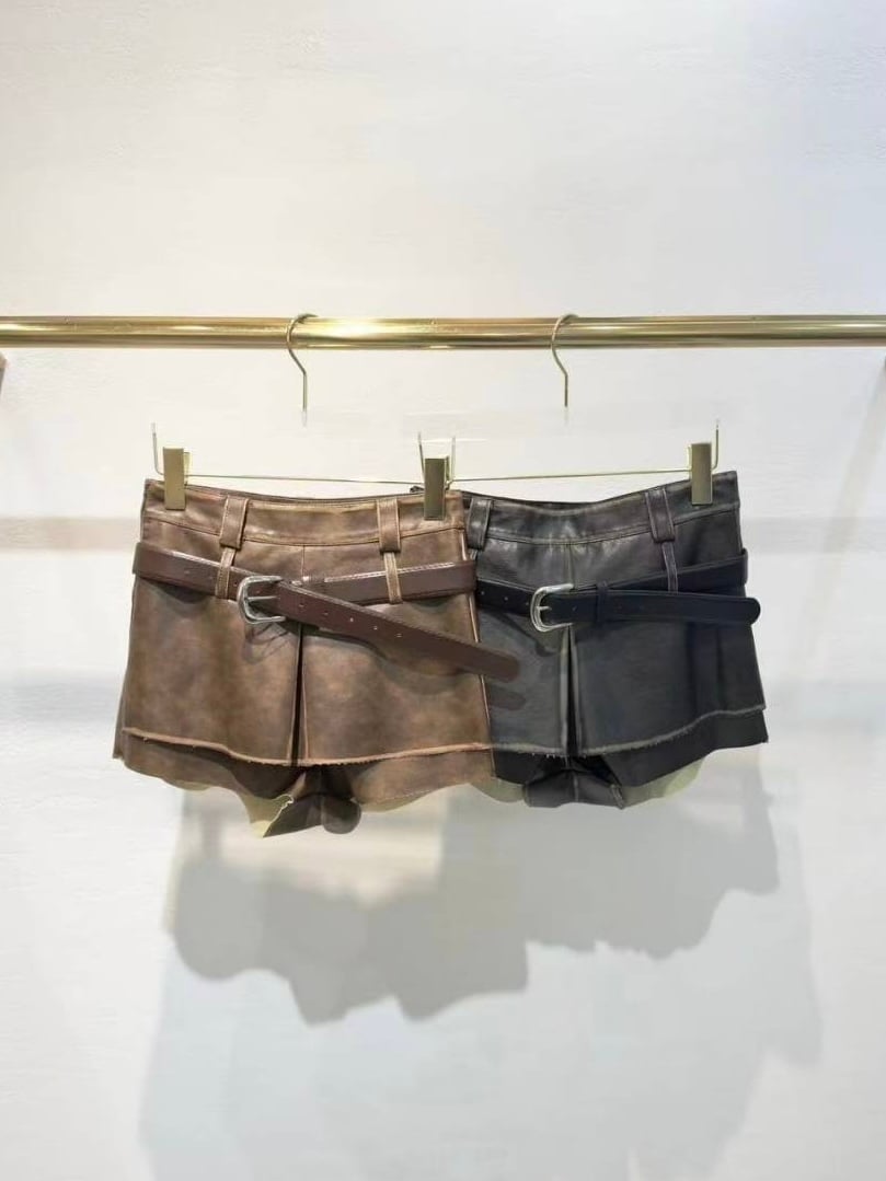 仿皮短褲連belt set