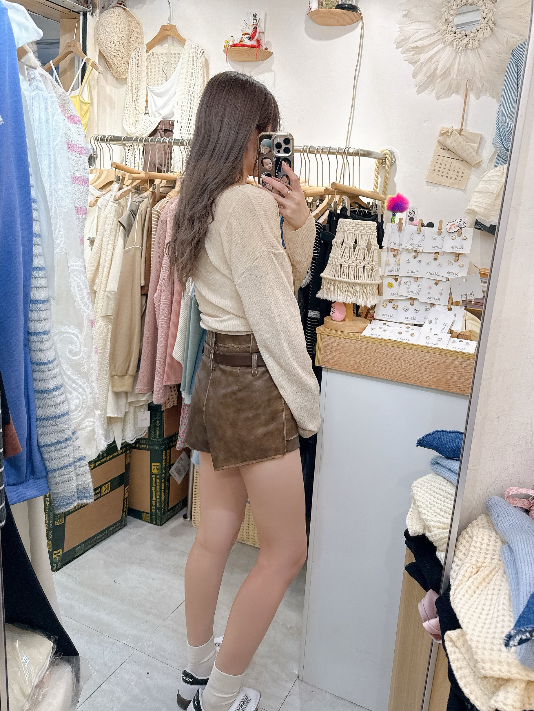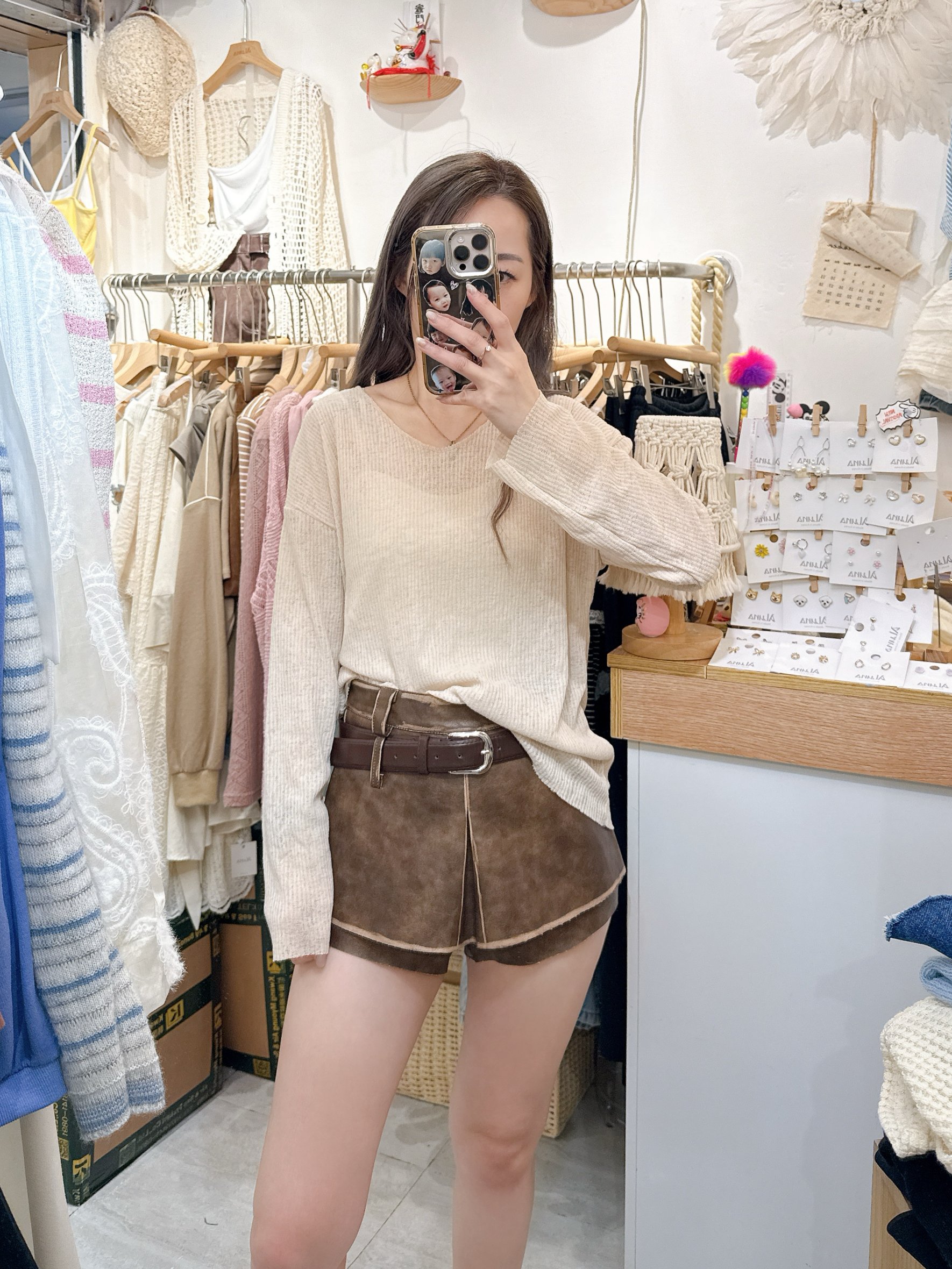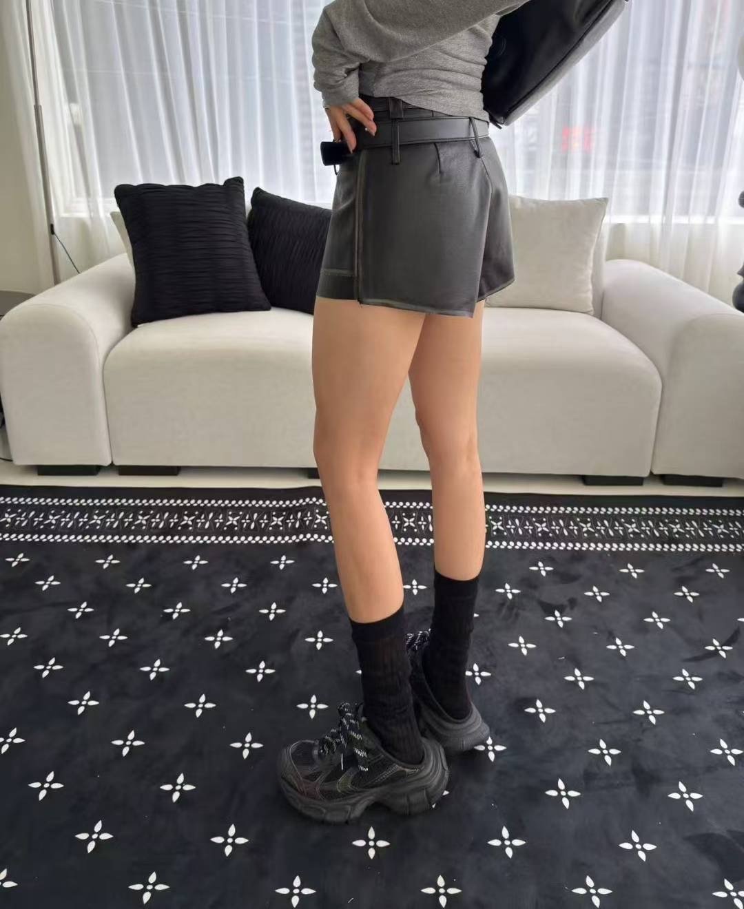 仿皮短褲連belt set