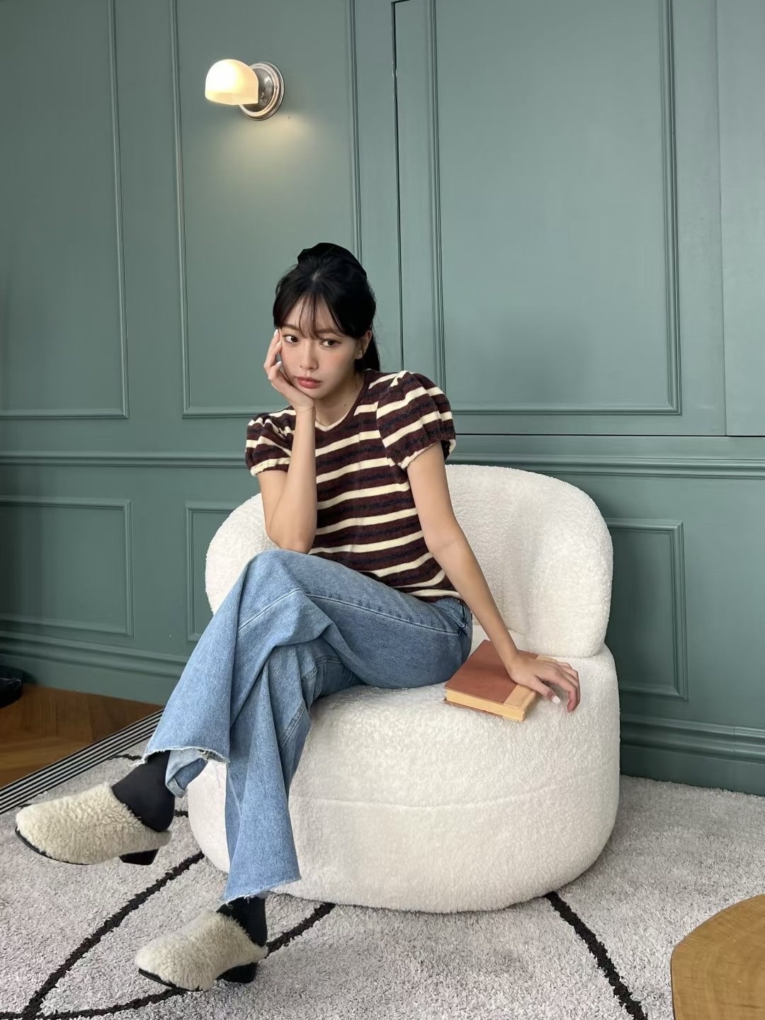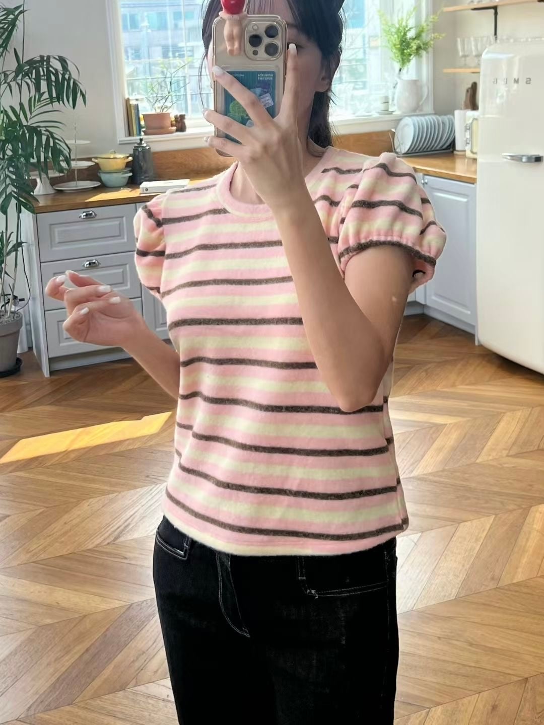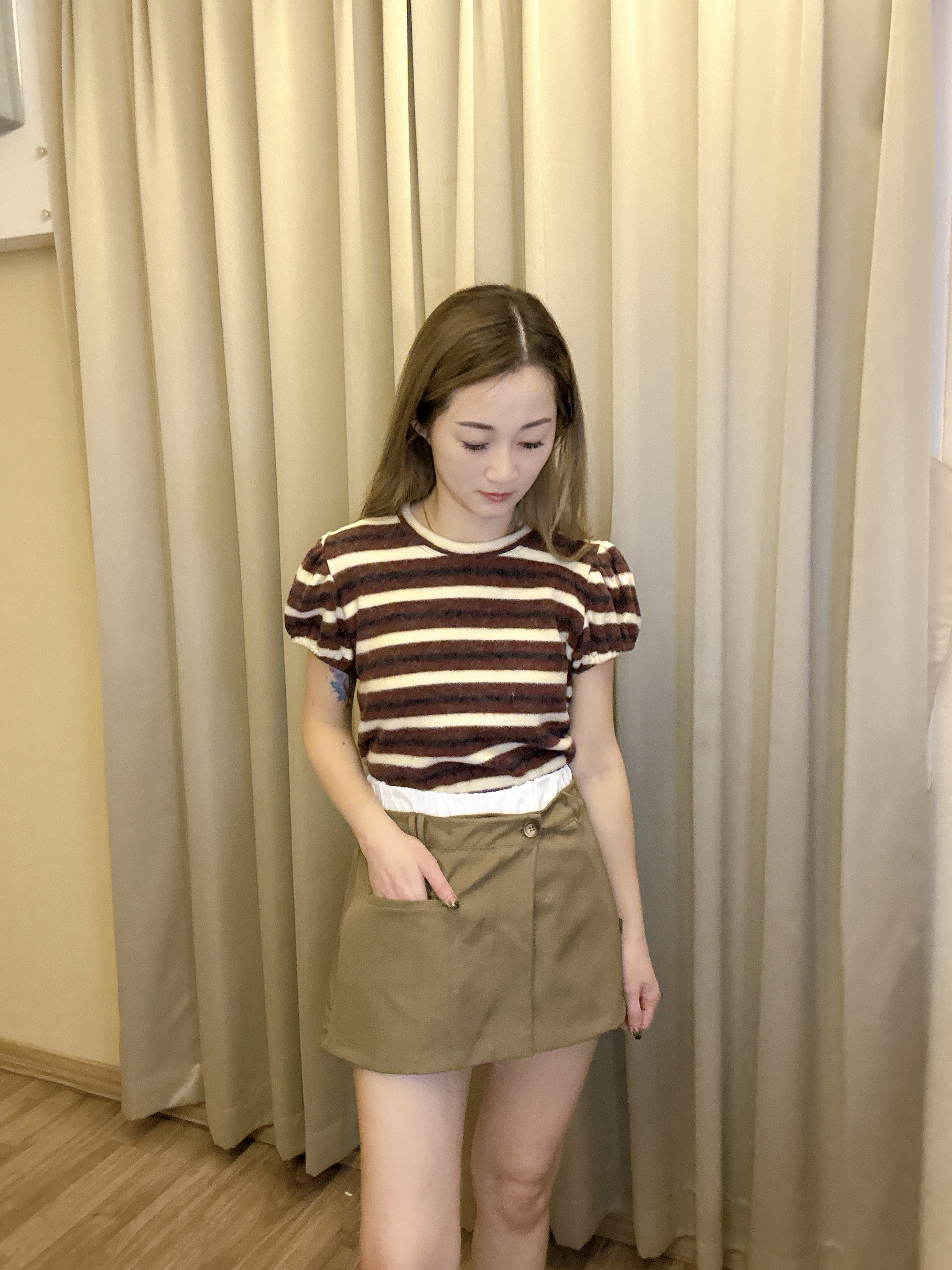 橫間拼色top