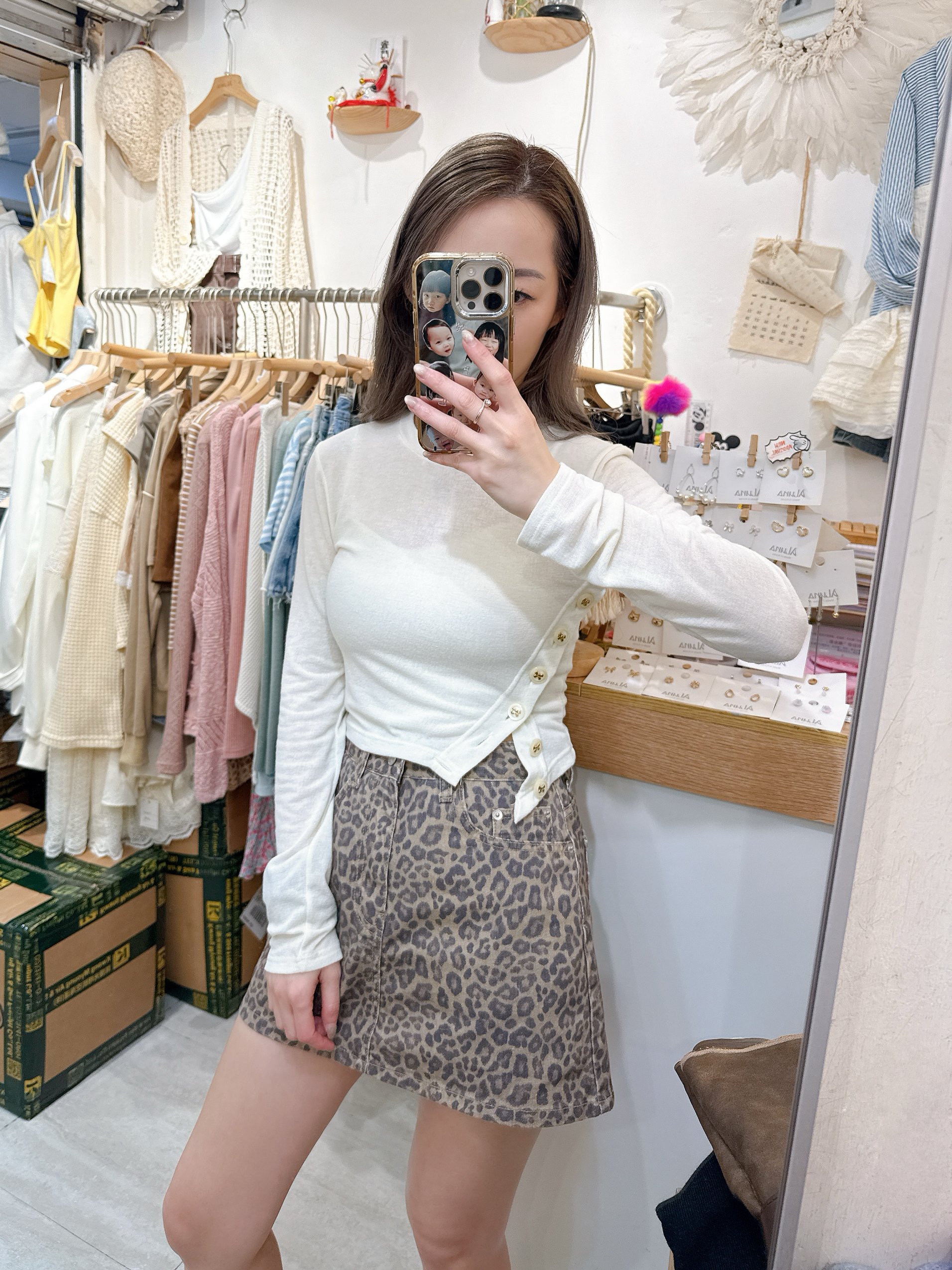蝴蝶結鈕薄長袖衫
