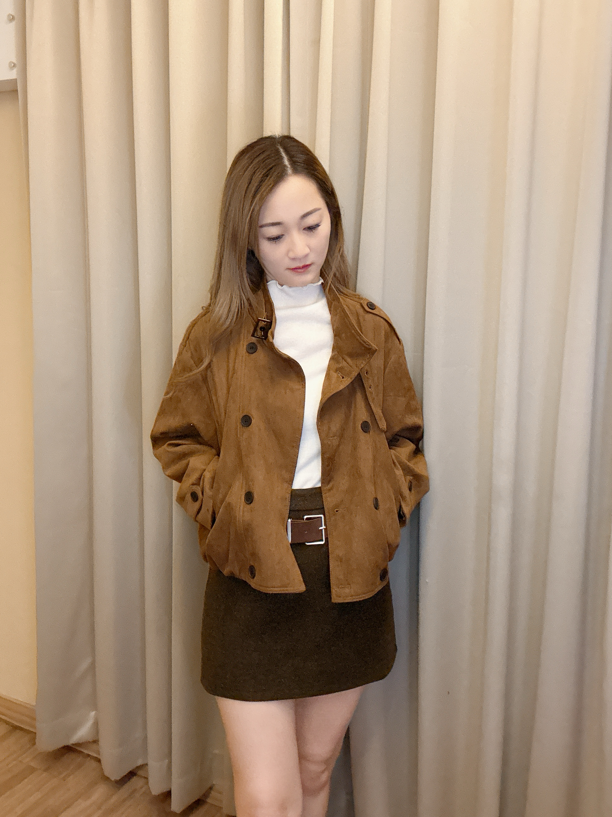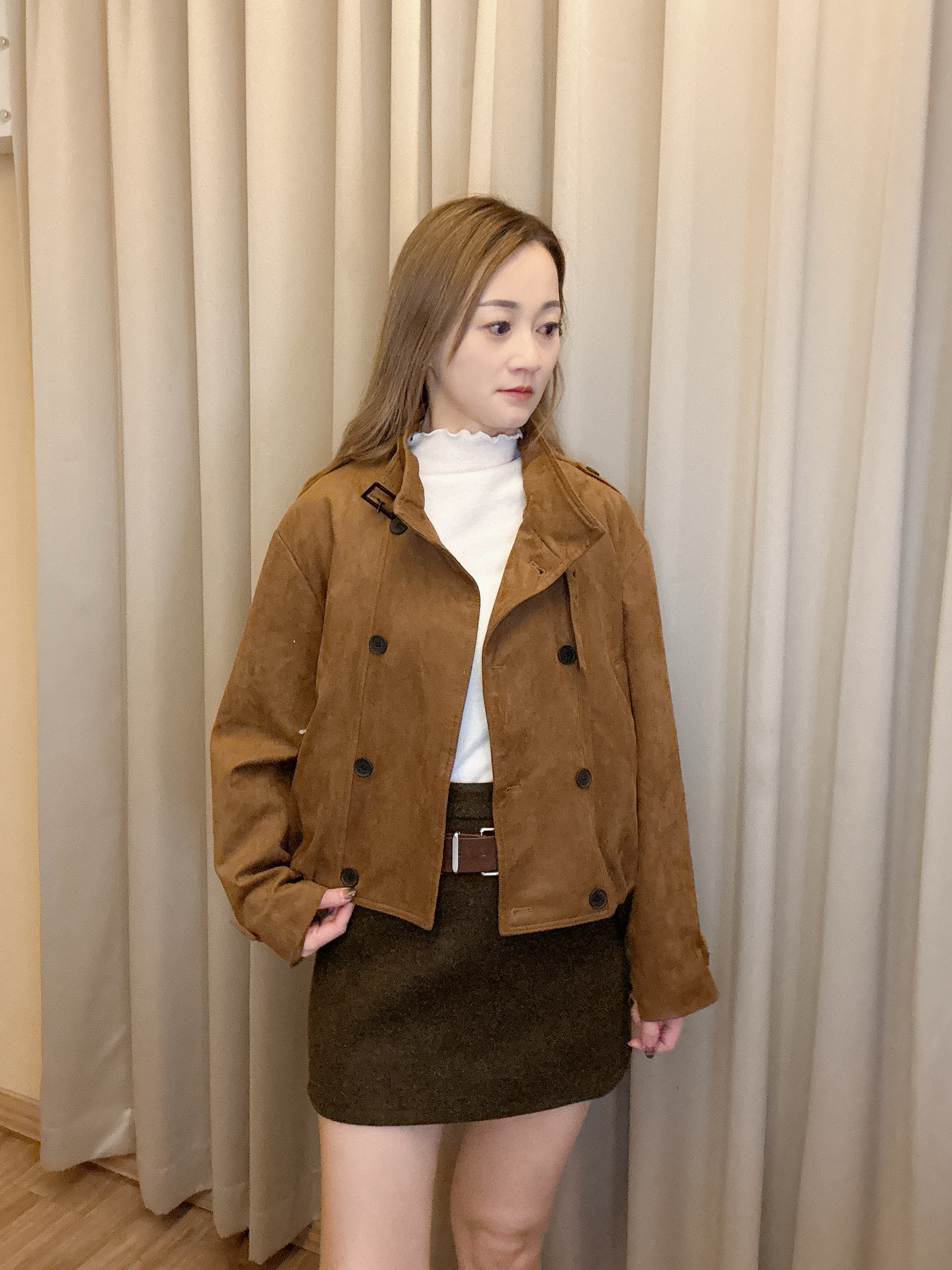 麂布孖襟外套