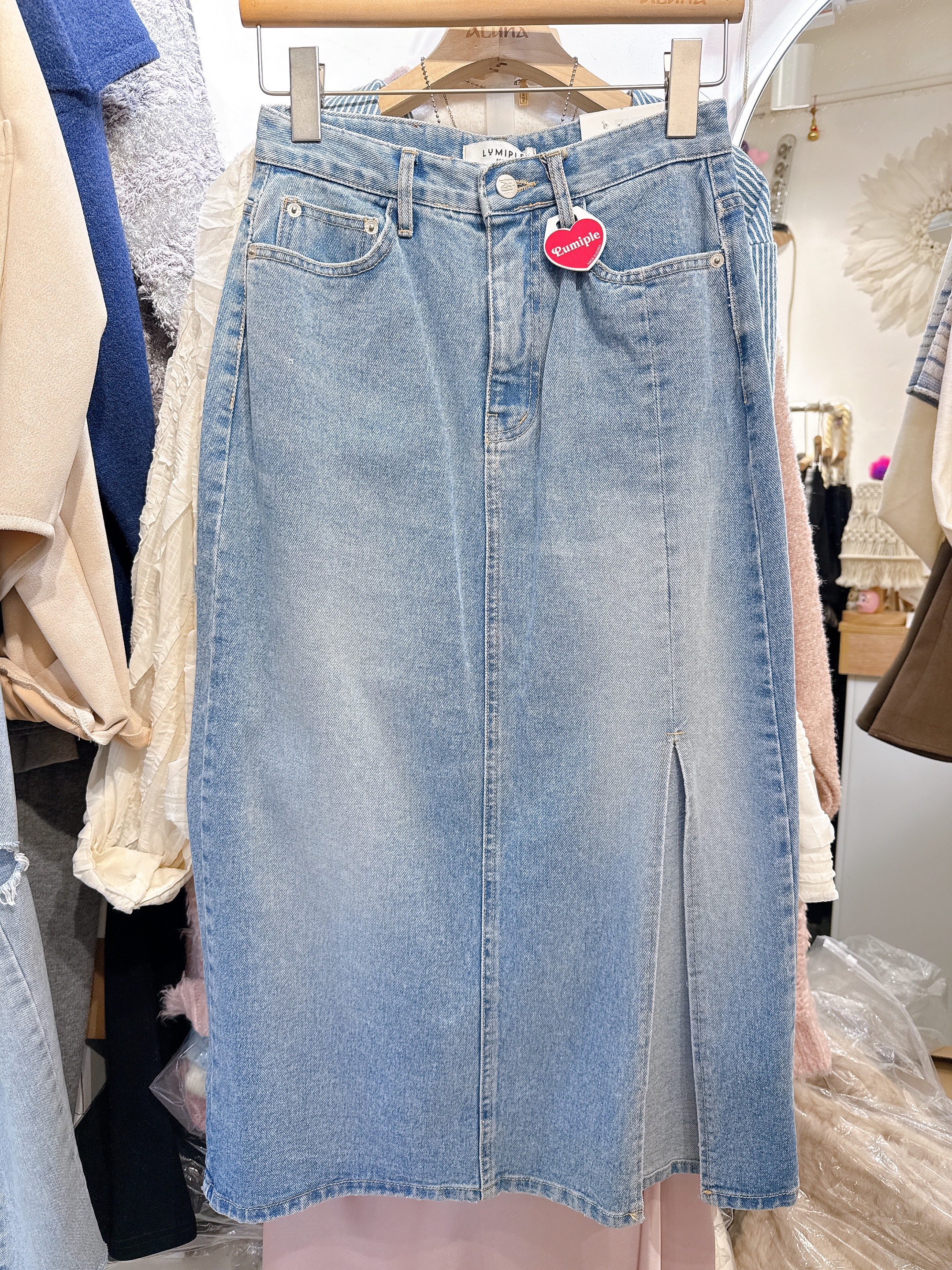 開叉牛仔長裙
